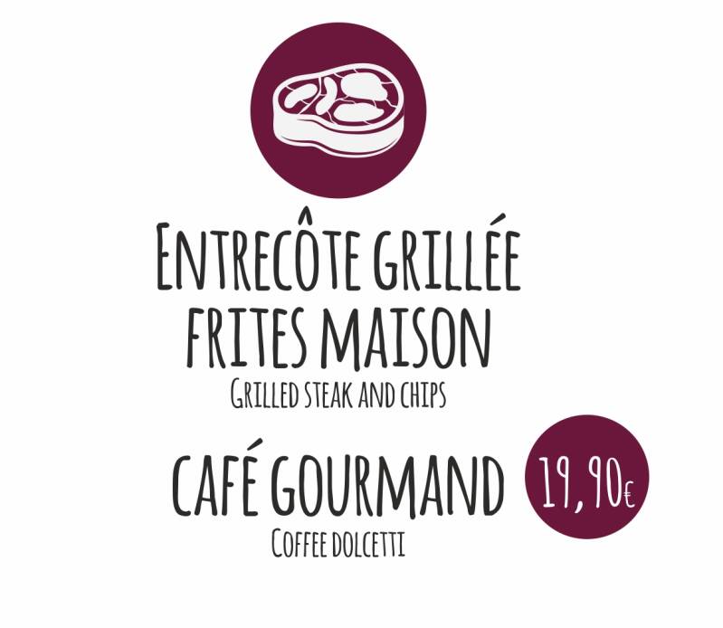 Chaque semaine, notre chef vous propose un menu différent, préparé selon son inspiration et les produits du moment. Des plats brasserie sont également à la carte, toujours selon l'humeur du chef et la saison. Tous nos plats sont faits maison.